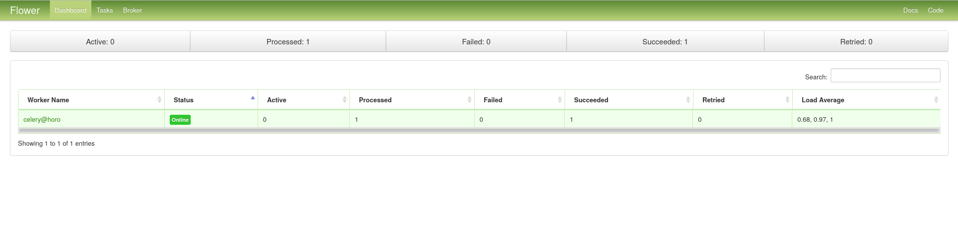 Flower will show us the active tasks, processed, with failure and information of each one of them.