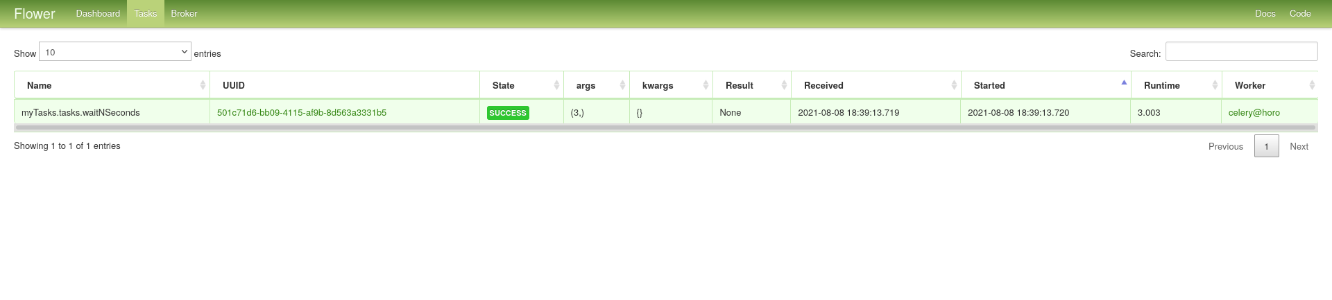 We will also be able to see specific information for each task, such as its identifier, arguments, time and execution time.