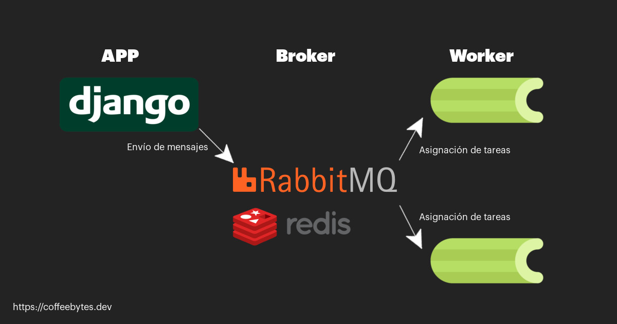 We will also need RabbitMQ, which will serve as an intermediary between django and celery sending messages and activating the workers of the latter to execute the tasks.