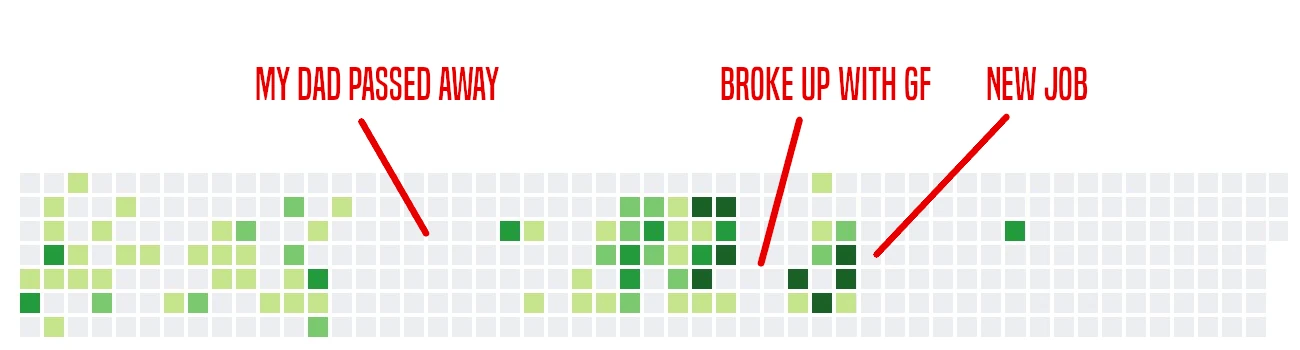 This is just a representation of how a github’s contribution chart can be a reflect of someone’s life