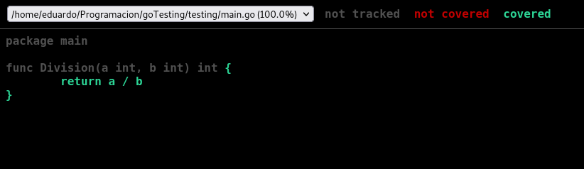 /home/eduardo/Programacion/goTesting/testing/main.go:3: Division 100.0%