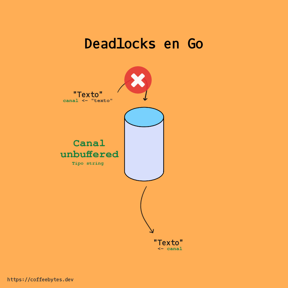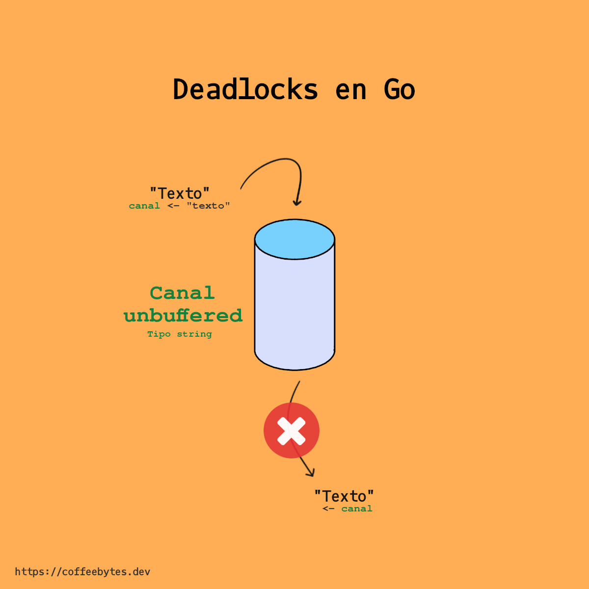 In any of these cases the goroutines are “waiting” either to send or receive information, so we can say that we are “stuck” and that is when we receive the fatal error: all goroutines are asleep - deadlock!