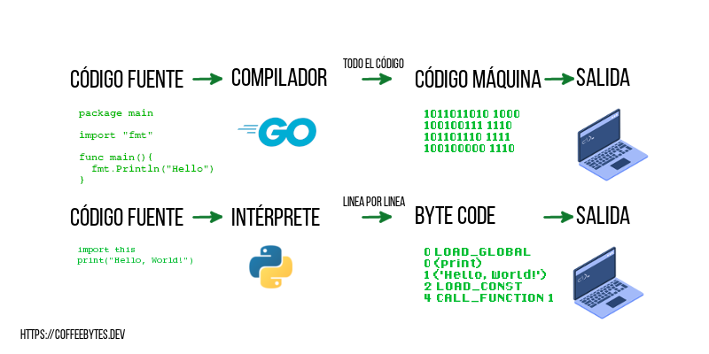 I had already explained a bit about the differences between an interpreted and a compiled language in my python vs javascript comparison , so if you want to refresh your memory a bit go there.