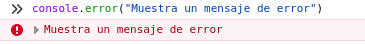 console.assert(false, "Este mensaje se muestra porque el primer argumento es false")