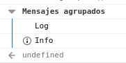 console.group() marks the beginning of the messages we want to group and receives as argument the title of the grouping, while console.groupEnd() marks the end of this grouping.