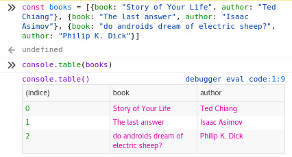 With this example I end this entry. I hope that the next time you use console.log() you take into account the different options you have to make easier the development of your code. In this entry I only put the most useful methods, if you want to go deeper into the subject you can consult the official documentation