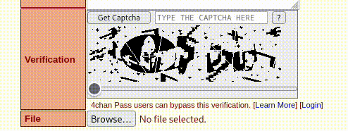 In defense of this captcha, I will say that it is a necessary evil on a website where it is not necessary to register to post, home of what was (or is) one of the most famous hacker groups: Anonymous and where illegal material was (or is) distributed, pictures and videos so cursed that will make you doubt if humanity deserves to share this planet with the rest of animals.