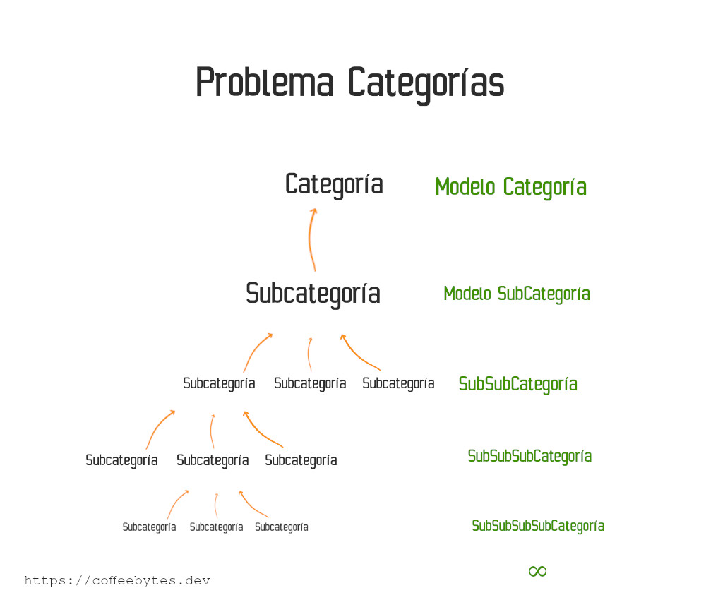 Pues, añadimos una clase SubSubCategoría ¿no? Pero… y si esas SubSubCategorías tienen a su vez subcategorías. ¿Ves a donde intento llegar?