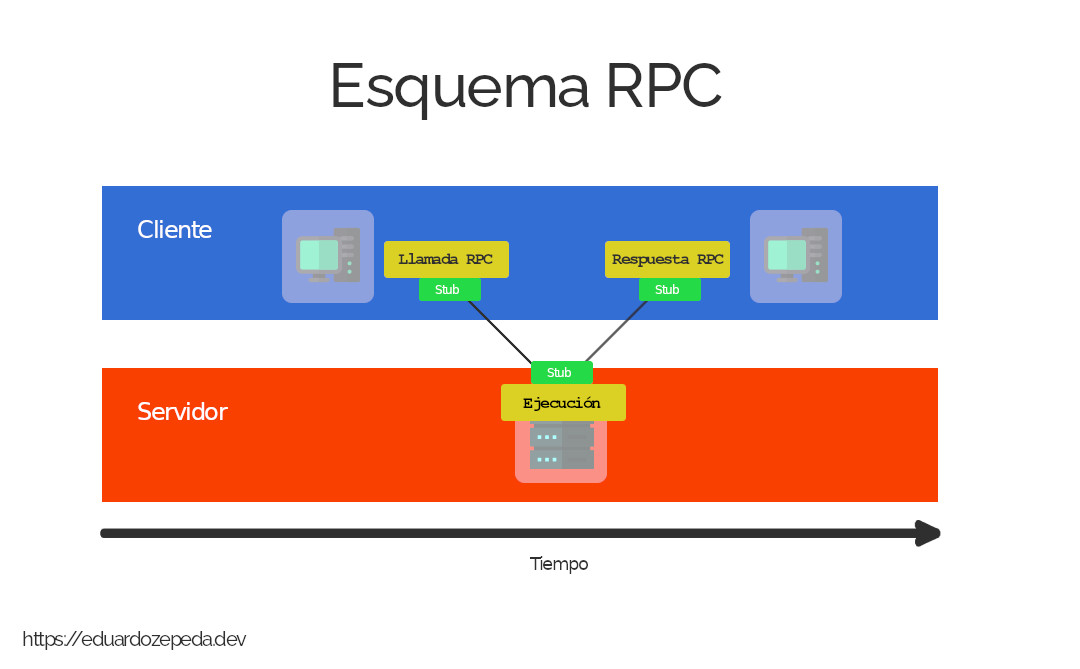 gRPC emula a RPC con la ventaja de que no necesita usar el mismo lenguaje de programación para llevar a cabo la comunicación entre máquinas.